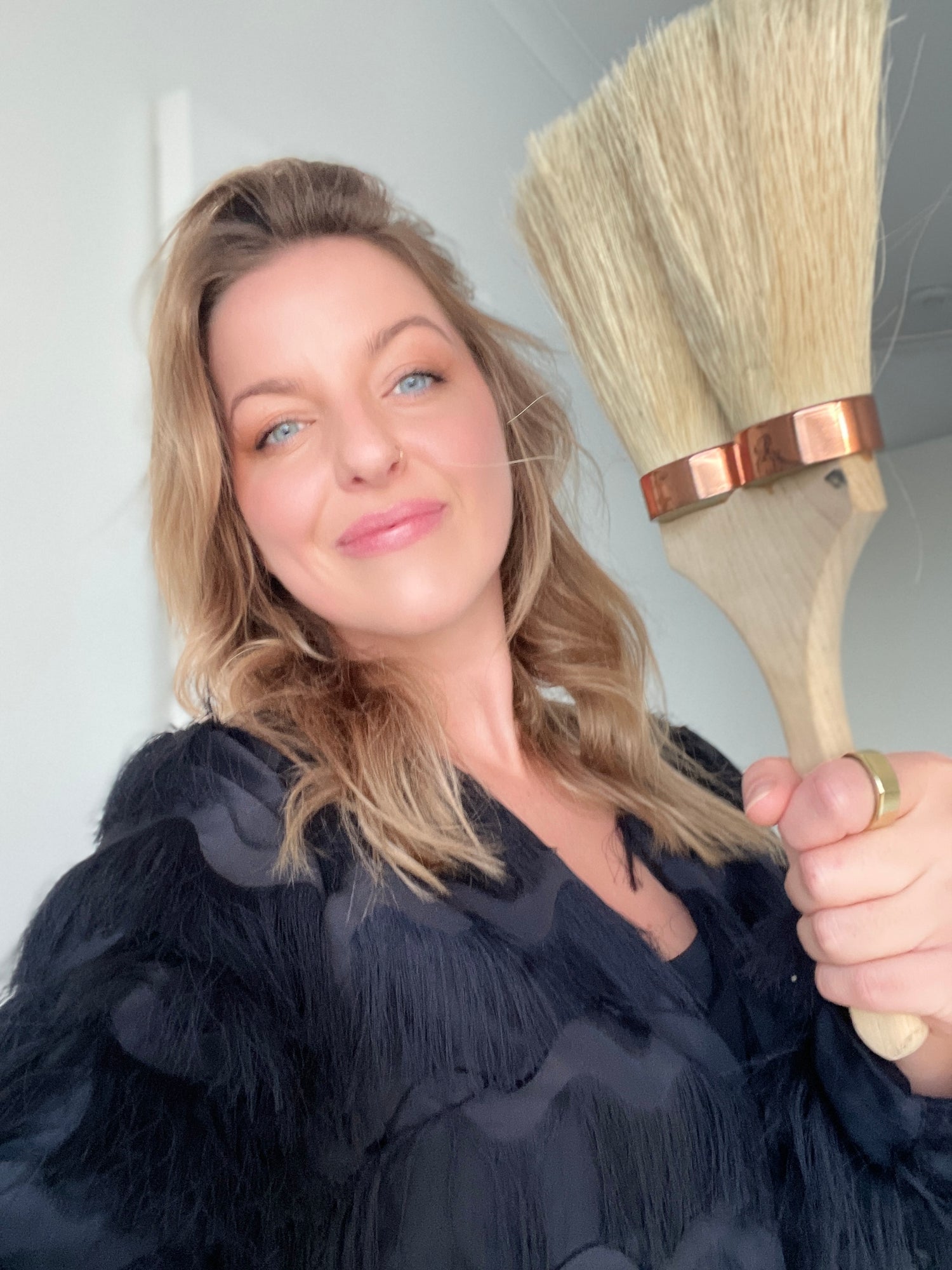 Known for her use of black and neutral colours, Rebecca enjoys collecting new and unique tools to use on the canvas. She primarily works on raw, unprimed cotton canvas with a distinct focus on expressive marks and unapologetic abstractions.