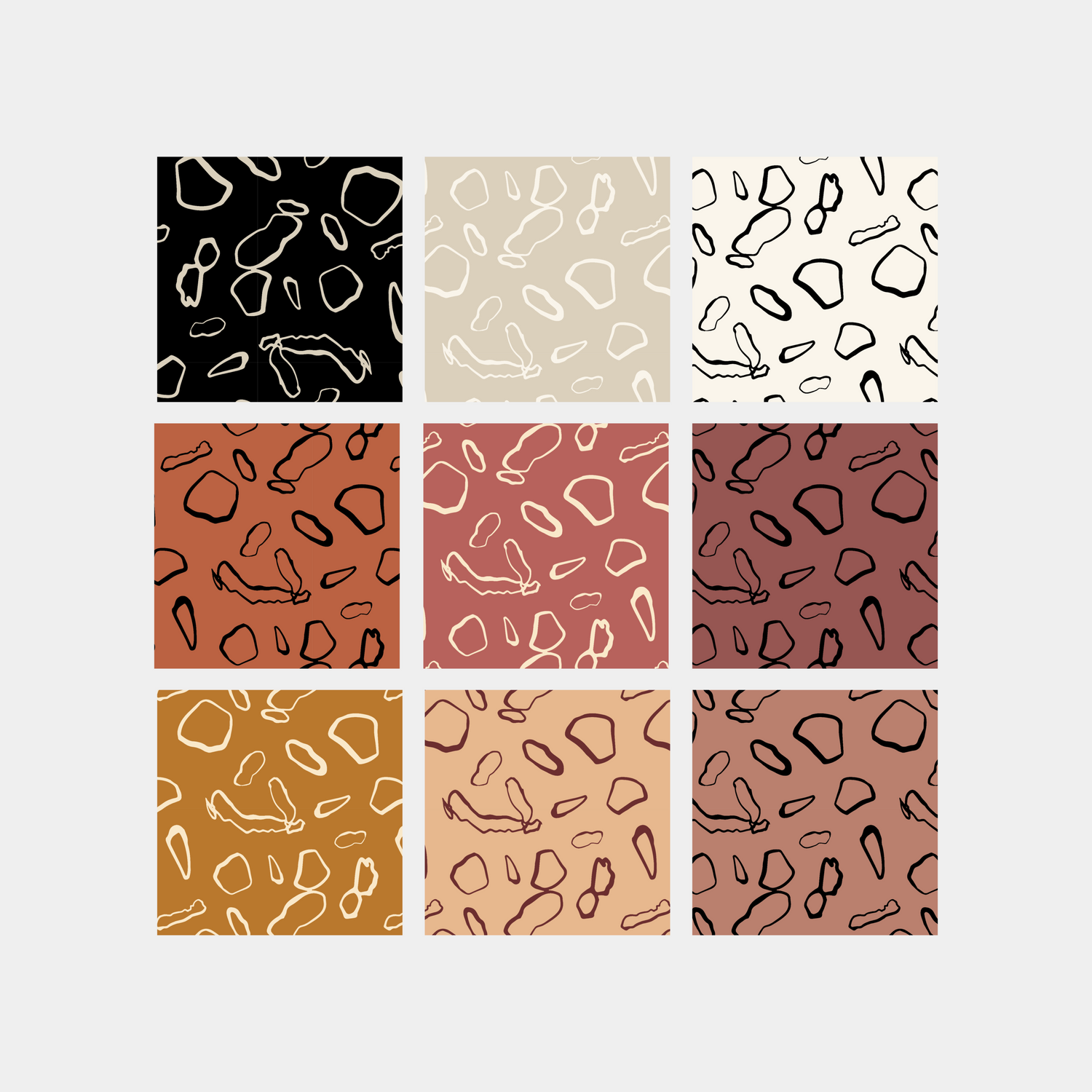 Hand-drawn marks taken from one-of-a-kind findings make this pattern both unique and intriguing.